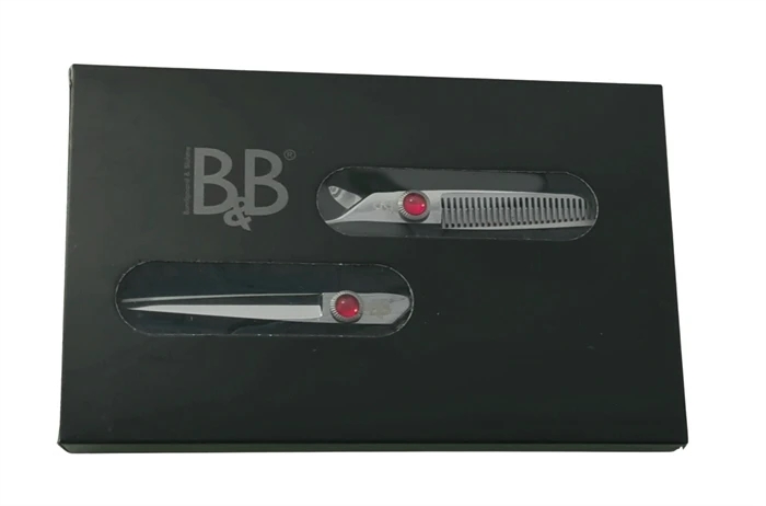 B&B Saksesæt leveres i en flot og praktisk æske, der beskytter saksene og gør dem nemme at opbevare.