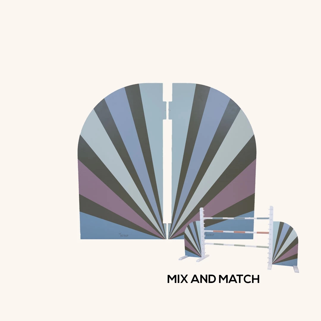 Kæpheste springsider - Striber - By Astrup', det ideelle valg for at skabe livlige og tilpassede springbaner. Sættet inkluderer elegante springsider med kæphestesilhuetter, ideelle til at kombinere med grundmoduler og farverige springbomme. Perfekt til kreative og aktive lege.