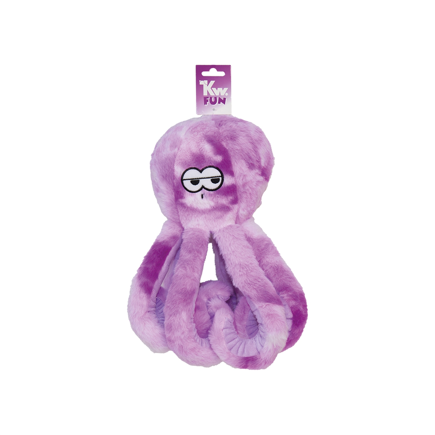 KW Kæmpe Blæksprutte i lilla er et sjovt og farverigt plyslegetøj til hunde, der elsker at lege, kaste og ruske. Dette kæmpelegetøj måler 35–45 cm afhængigt af stræk i armene, og den store bløde krop giver en ideel form til både apport og hyggeleg.