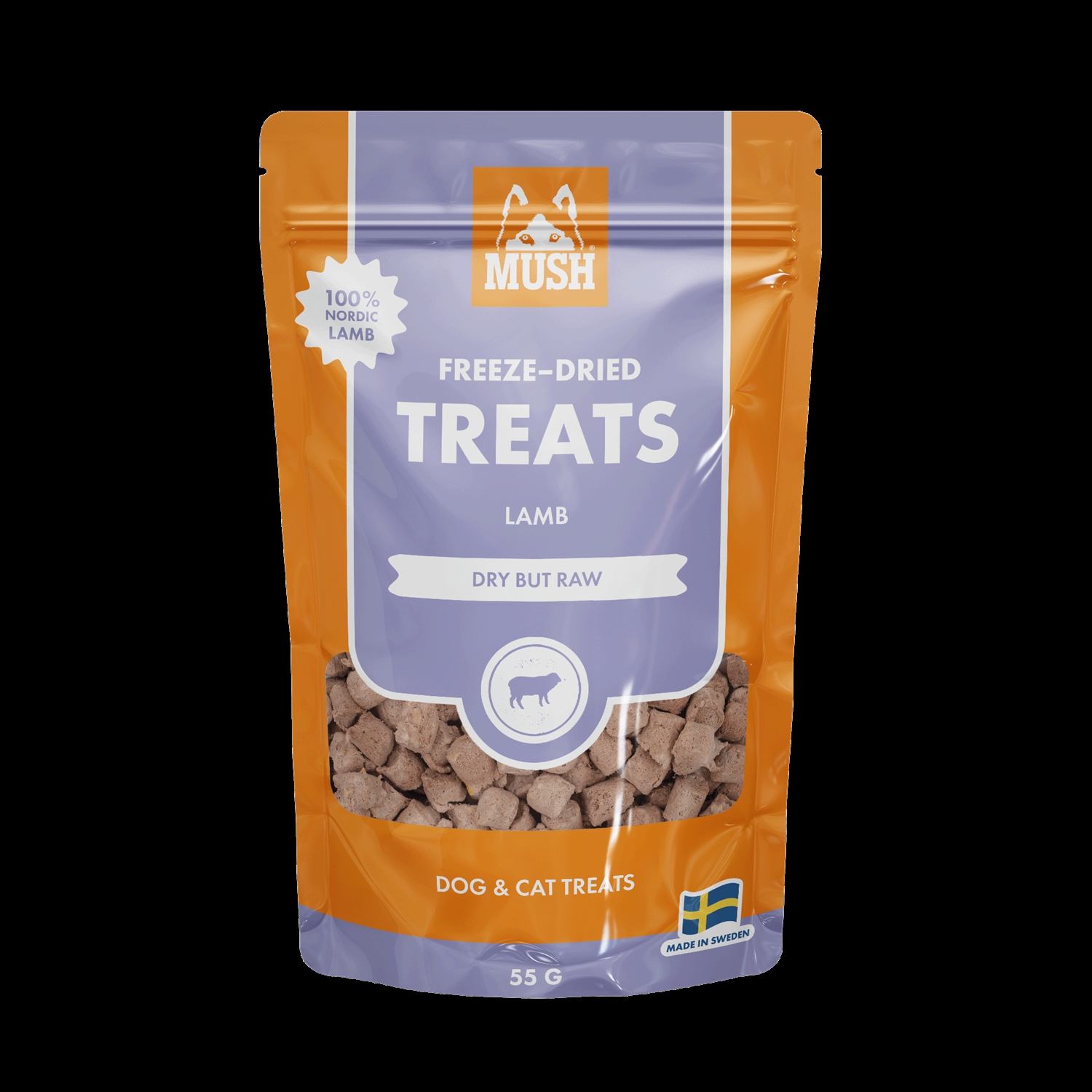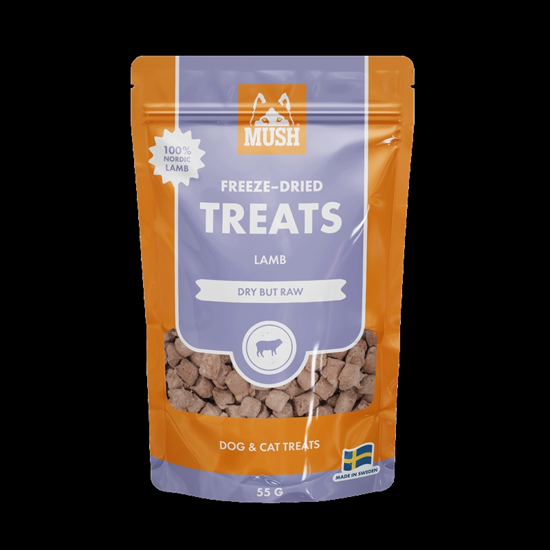 MUSH Frysetørrede Godbidder Lam er en eksklusiv og naturlig hundegodbid fremstillet af nøje udvalgte nordiske råvarer. Godbidderne består udelukkende af lam og indeholder både kød og næringsrige organer, som bidrager med et højt indhold af animalsk protein og fedt.