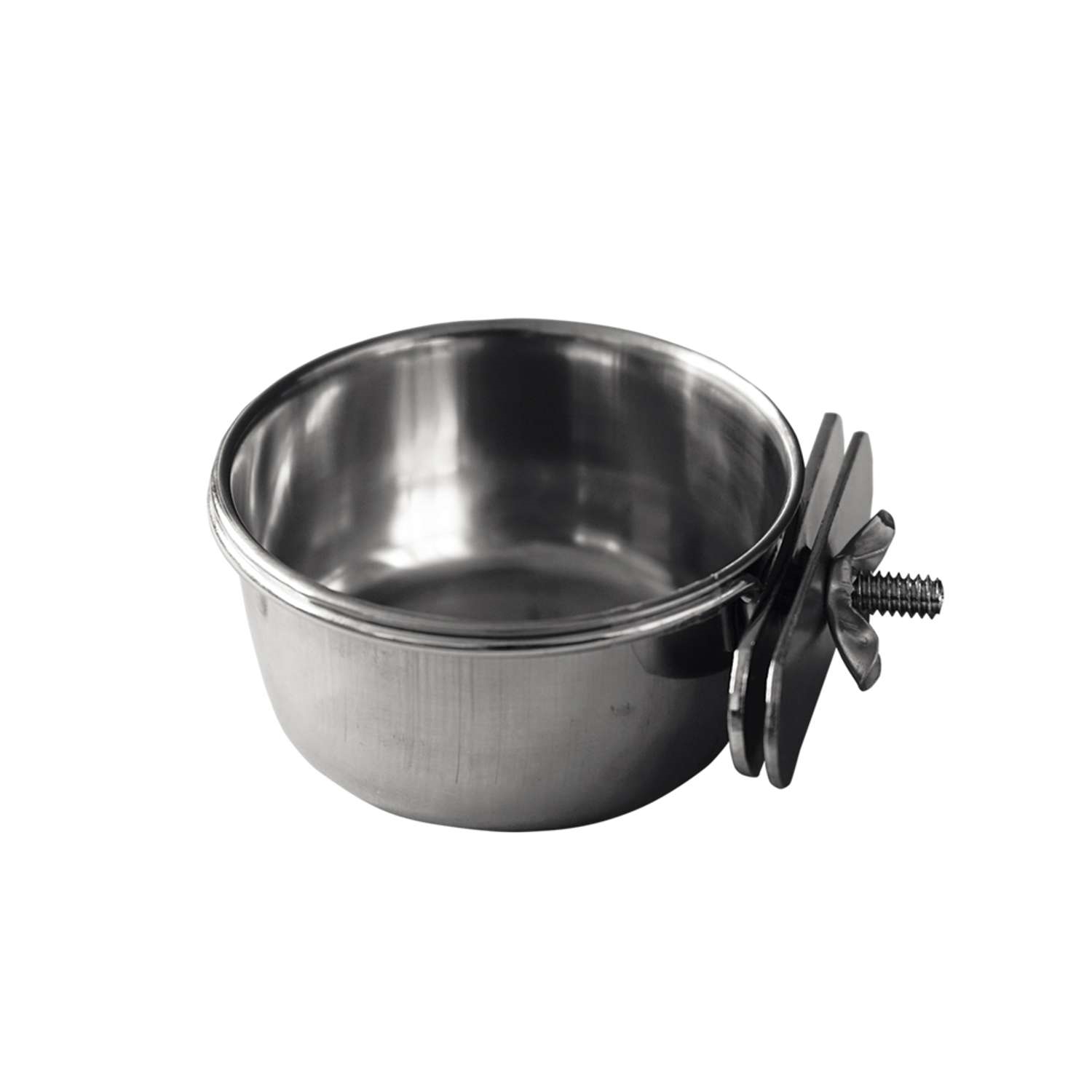 Stabil rustfri stålskål med skrueholder til sikker montering i fuglebur.